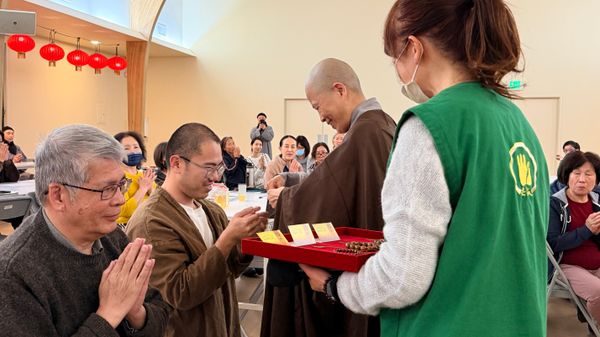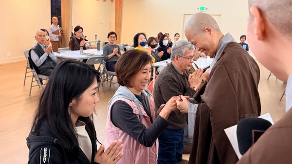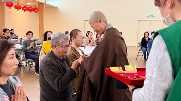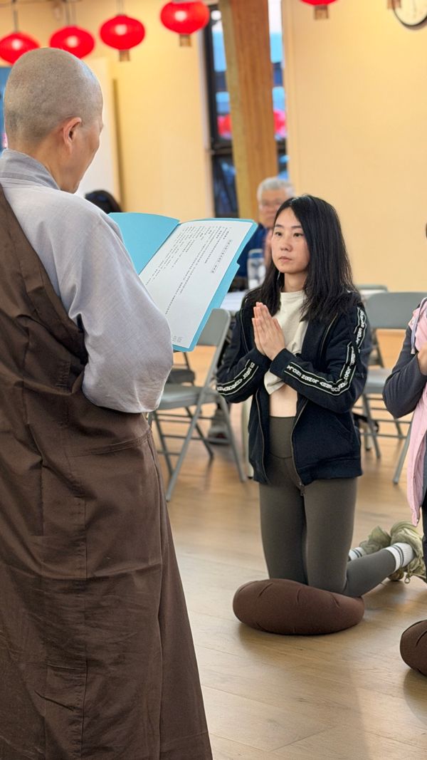 在講座圓滿之後,我在果廣法師主持下接受了皈依,蒙賜法號「寬信」。其實在上課前,因個人身心狀況,當時的人是沉重的,心也是沉重的。但在皈依那一刻,合掌低頭時,心好像逐漸安住了。於是歸命依止-以佛為覺,以法為道,以僧為伴。