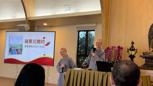 3月17日,在法鼓山洛杉磯道場的新書分享會上,果毅法師與常遂法師娓娓道來他們於2022年在美國西雅圖舍衛精舍參與漢藏佛教修行對話的親身經歷。那是一場匯聚法鼓山十位漢傳法師與多位西方藏傳法師的深度交流,不僅展現不同傳統之間的真誠對話,也成為一段令人深受觸動、彌足珍貴的聞法因緣。