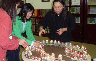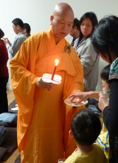 接下來的點燈,由果元法師傳燈給常啟法師,再由兩位法師傳給眾師兄師姐,宛如 古時釋迦牟尼佛將他所領悟的佛法傳給弟子,又一代一代地讓佛法流傳到現在。後來所幸 師父領悟到「佛法這麼好,知道的人這麼少,誤解的人這麼多,了解的人卻這麼少」,而 將深奧難懂的佛法簡單化、生活化,使人更容易感受到佛法的力量與好處。現在的我們是 如此幸福,能夠接觸到師父所推行的佛法,我們更應該與大家分享。果元法師說,「一個 人的燈,亮度有限;很多人的燈,亮度卻是無限大的」,因此傳承佛法的工作是需要大家 共同努力,才有可能達成的。