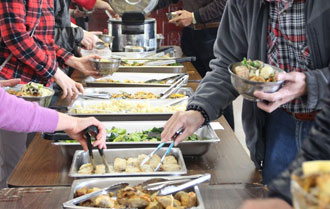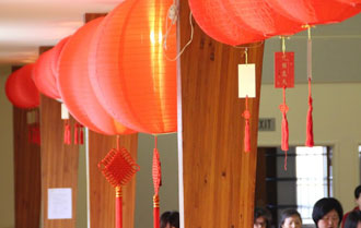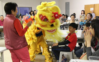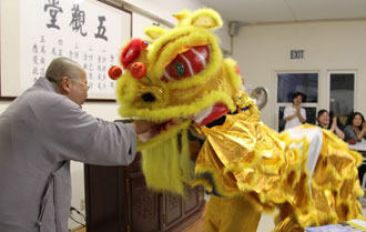 洛杉磯道場今年的迎春活動,迫不及待的在新春的前個週日,便歡天喜地熱鬧的揭開序幕。因為那天道場舉辦了歲末感恩餐會,將近90位義工菩薩把齋堂擠得是水泄不通。席開10桌的火鍋,一桌比一桌還熱鬧,還有義工菩薩們真槍實彈的舞獅子,中間更有法青的即席表演。把過年歡樂的氣氛,提前燃到最高點,比嘴裡的麻辣火鍋料,還夠年味!三位常住法師,更是為在場的每位菩薩發象徵ㄧ元復始的壓歲錢、結緣福袋和光明遠大萬用袋。