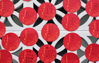 此外並有「許願祈福牆」「心靈處方籤」及「法師祝福」等充滿喜慶熱鬧氣氛的禪味有趣的設計,尤其是菩薩們把滿滿的心願與祝福,寫在卡片上,然後貼在廊道上的花磚上,ㄧ張張的紅色小卡片,與大殿及室外掛滿紅色祈福的燈籠,微風徐徐吹來,將道場飄滿了溫馨喜慶的年味。